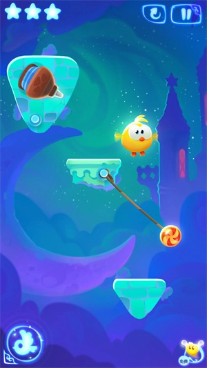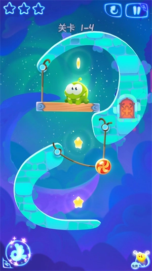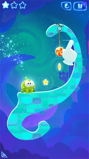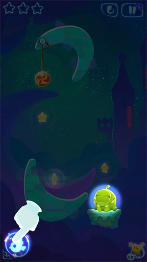割绳子:滑动屏幕割断绳子,让糖果掉进Om Nom的嘴里。