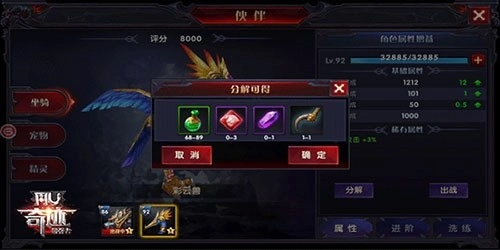 关于材料的选择,玩家可以从神鹰火种、洛克之羽、玛雅武器、潘多拉魔盒碎片等选项中挑选。这些材料的用途包括强化或进阶翅膀,以及提升装备属性等方面。其中,潘多拉魔盒碎片尤为特别,玩家能够通过完成悬赏任务来收集它,进而合成魔盒并开启其中的珍稀材料。