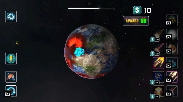 点击右侧的图标,选择你想要使用的武器类型,接着点击星球表面来释放武器。