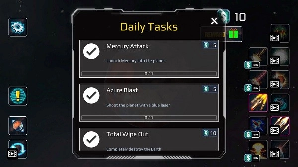成就系统:玩家完成任务、达成成就后,能够获取奖励,解锁更强大的武器与星球。