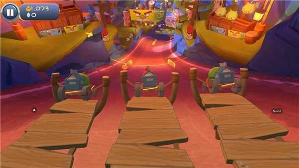 这是愤怒的小鸟系列首次采用全3D视角打造动态世界,镜头能够自由环绕角色,鸟羽的光泽、猪鼻的反光以及轮胎扬起的尘土都清晰可见。