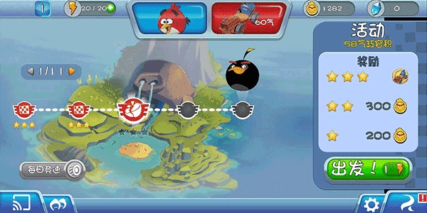 进入愤怒的小鸟卡丁车游戏后,长按屏幕上的小鸟角色进行蓄力,待松开手指的瞬间,即可完成弹射起步,卡丁车便会随即冲出起点。