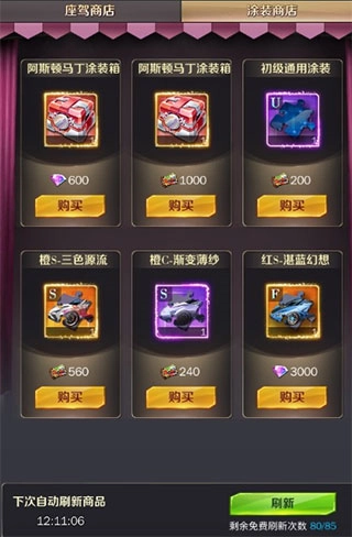通过赛车币礼物获得的涂装卷,可用于在座驾商店购买指定涂装,也能直接用钻石购买。这里建议把钻石花在涂装卷上而非其他地方,因为每天免费刷新次数很多,能更稳定地获取想要的涂装,很快就能凑齐一台座驾的新涂装外观。