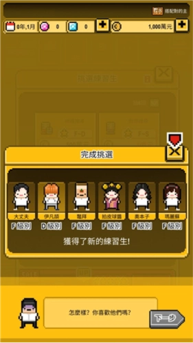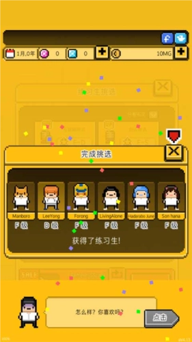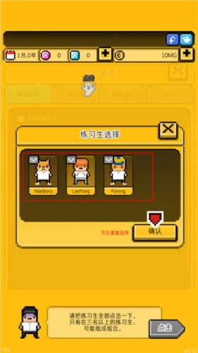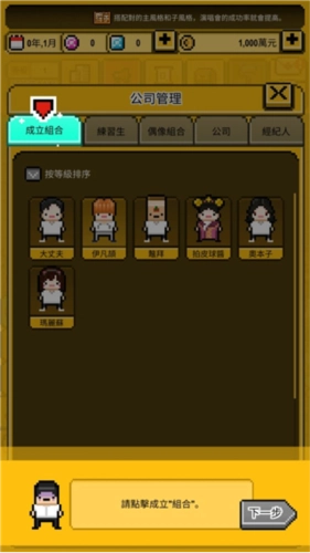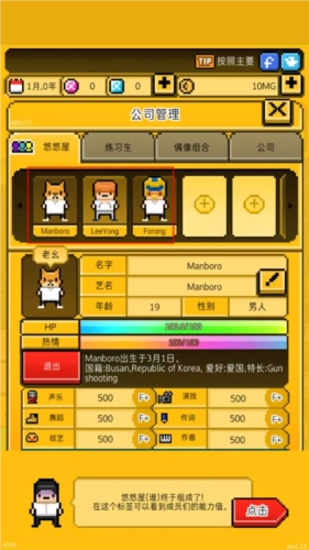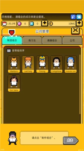 玩家创建好自己的公司后,就能挑选心仪的练习生组建偶像团体了,可通过上方的任务按钮进入挑选界面。