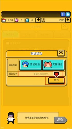 现在正式开始进行组合操作,第一步是选择组合的性别并确定名称,完成这两项后点击下方的制作按钮即可。