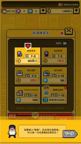 等待互联网筛选之后,就能获得只有F级的练习生。