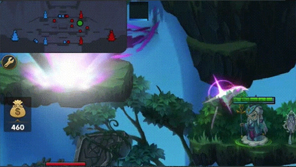 当然,PVE玩法只是该作品的一部分,本作最吸引玩家的还是全新的MOBA玩法。游戏还原了MOBA经典的上中下三路及野区设定,不再是单纯的打怪,而是更具刺激感的PVP和推塔玩法。