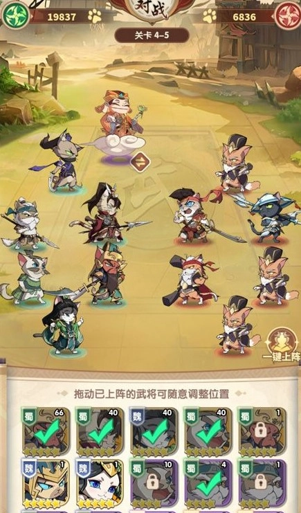 当升级达到上限后,点击“一键穿戴”按钮,即可为武将装备掉落的装备。