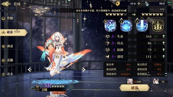 处于满蝶满灵气的状态时,三技能能够增加40%的伤害和40%的命中率,而二技能会让全体进行两次普通攻击,不过第二次攻击的伤害会有所衰减。