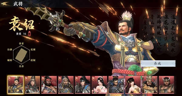 袁绍是一位全能型武将,兼具生存能力、输出能力与灵活性。他的冲刺技能【分云断水】在等级提升至高级后,能够免疫所有伤害和控制效果,十分适合用来规避BOSS的强力大招。