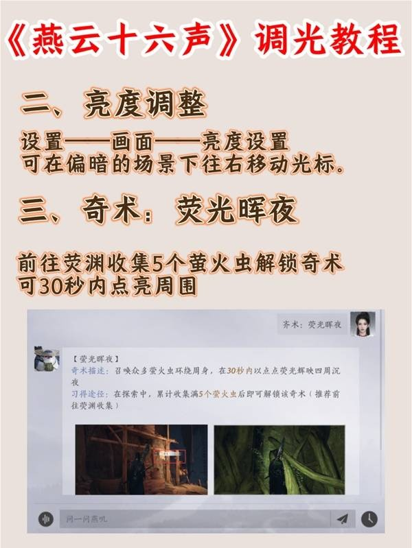 燕云十六声手游画面调光教程:不少玩家在体验燕云十六声时,可能会觉得游戏画面偏暗,影响了整体观感。为了帮助大家打造更加舒适的视觉体验,这里整理了详细的画面调光方法,包括设置亮度、调整画面风格,以及使用游戏内的特殊奇术,一起来看看吧!