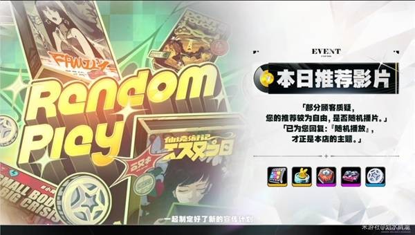 「本日推荐影片」:参与宣传活动,获取限定材料。