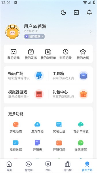 1、开启光环助手,进入【我的光环】页面,开启用户中心。