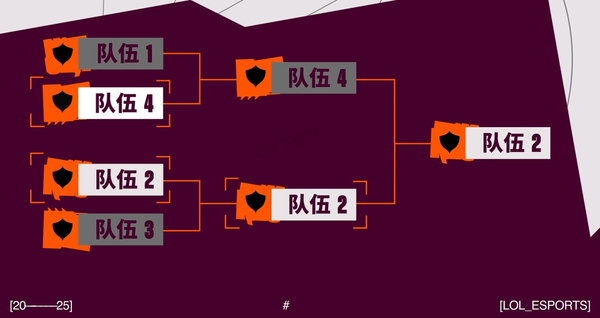 剩余的四支战队按照循环赛排名分组:第1名对阵第4名,第2名对阵第3名。