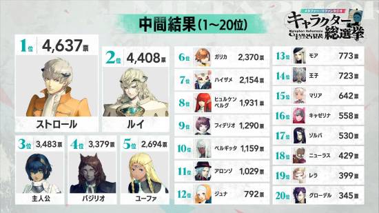 投票仍在进行中,1月31日才正式结束。目前日本地区的投票结果如下:主角仅排名第三,最终反派BOSS受到更多玩家喜爱。