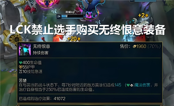消息人士爆料,LCK将实施禁令,禁止选手购买“无终恨意”装备。