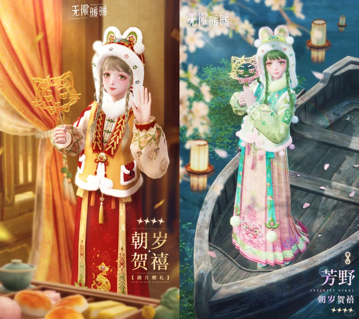 激活或续费【满月回馈】权益的玩家,可1钻石解锁4星套装【朝岁贺禧】。