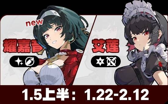 上半卡池(1月22日-2月12日中午12点):耀嘉音、艾莲、安比、可琳