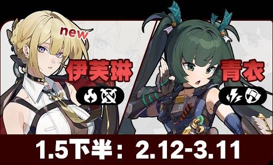 2月12日:1.5版本下半卡池开启,伊芙琳和青衣加入;同时开展「嗯呢从天降」签到送10邦布卷活动