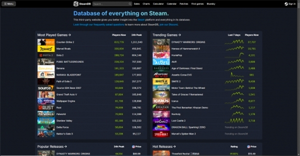 当你进入SteamDB网站后,你将看到各类Steam游戏的详细数据,网站涵盖了每款游戏的历史数据、定价情况、折扣信息、更新记录等,内容非常丰富。