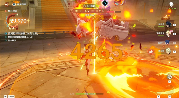 3、敌人会不断出现并且拥有不同的弱点,利用火元素角色的持续输出来快速击败敌人。