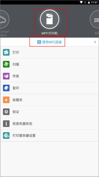 1、打开主界面,切换到【MFP/打印机】界面,点击“使用NFC连接”。