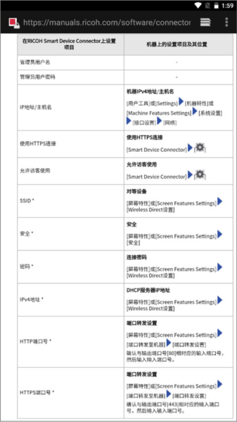 在使用RICOH Smart Device Connector与打印机配合之前,请先对打印机进行必要的设置。