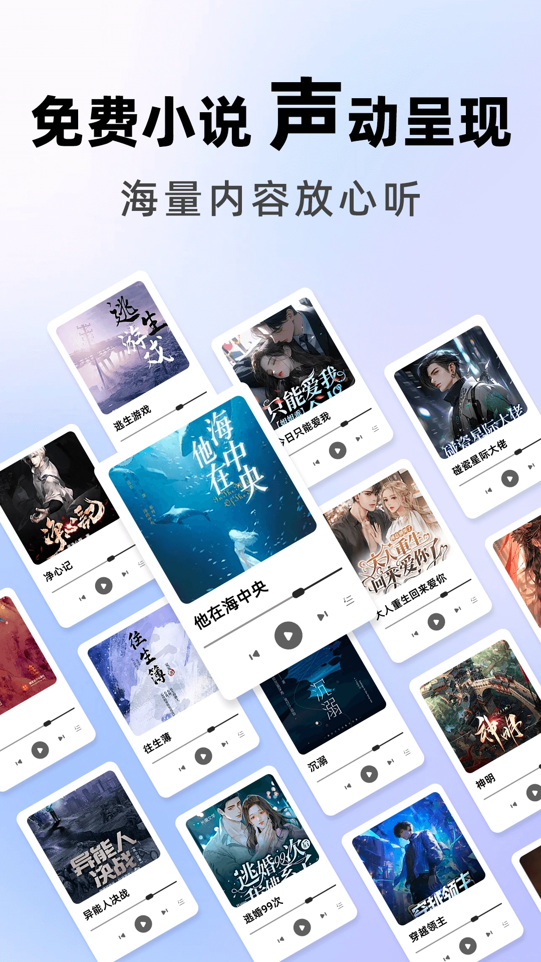 支持播放各类有声小说及音频,具备播放、暂停、进度调节等基本播放控制功能,操作简便。