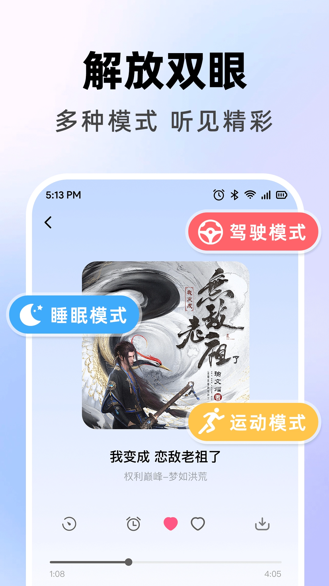 提供驾驶、睡眠、运动等多种收听模式,适配不同生活场景,满足用户的个性化需求。