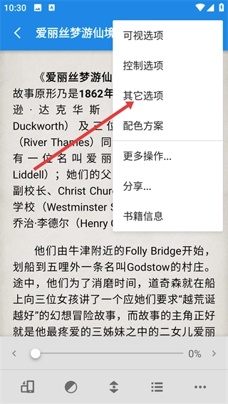 1、在【静读天下】首页点击【最近阅读】中的《爱丽丝梦游仙境》书籍封面,进入书籍阅读页面。
