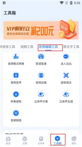 打开布谷鸟配音应用后,在界面底部找到“工具箱”入口并点击进入,接着在工具箱的功能列表里选择“音频倒放”选项。
