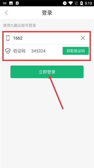在登录页面输入手机号与验证码,接着点击【立即登录】按钮,即可完成登录流程。