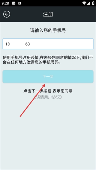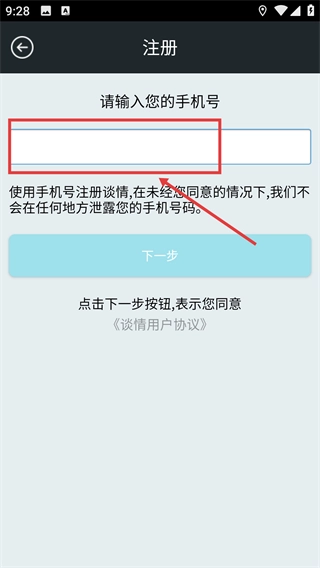 在注册页面输入手机号。