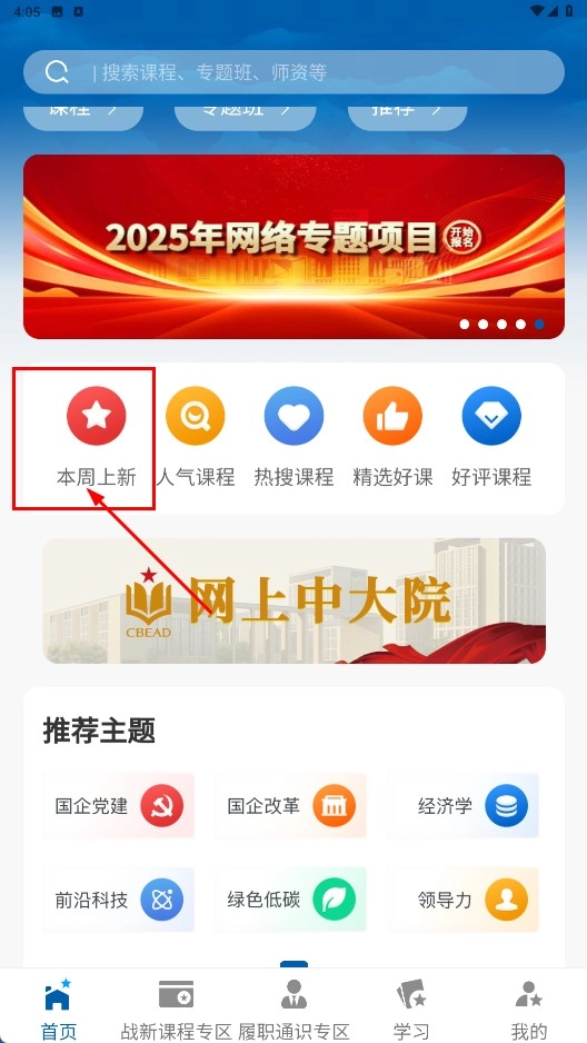 在首页找到并点击【本周上新】的入口,即可浏览最新上线的课程。