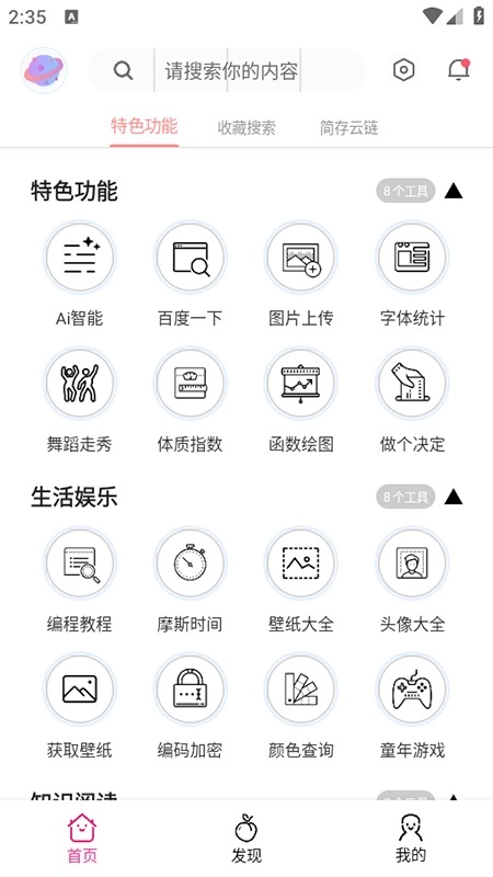 桃枫助手是一款由技术大佬自制的安卓玩机工具箱集合应用。打开桃枫助手后,在发现页面就能浏览到它涵盖的全部功能,像生活娱乐、知识阅读、特色功能等类别都包含在内,每一项功能都十分实用。尤为重要的是,桃枫助手的最新版本是完全免费的,而且不存在任何广告,希望它能为大家的生活增添更多便利!