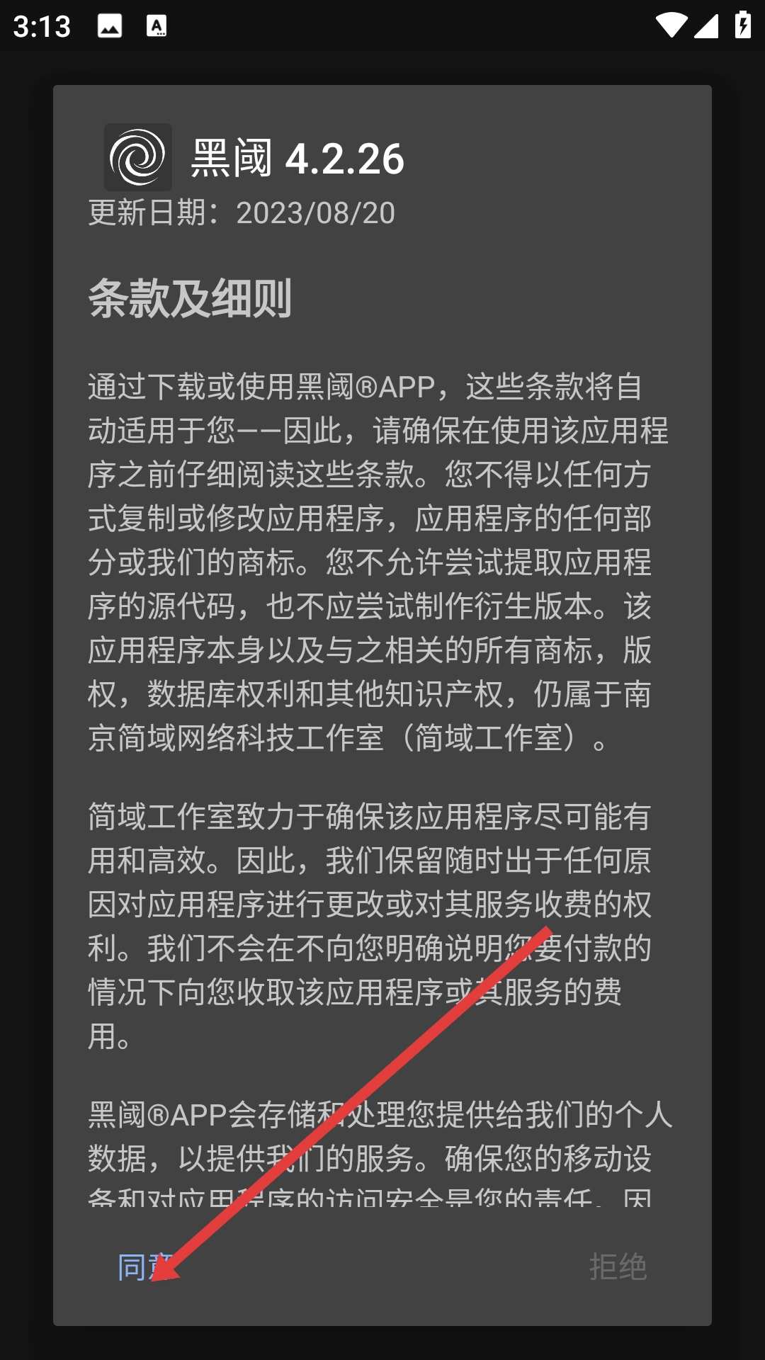 点击【同意】按钮,即表示您同意黑阈的条款及细则,随后将进入向导页面。