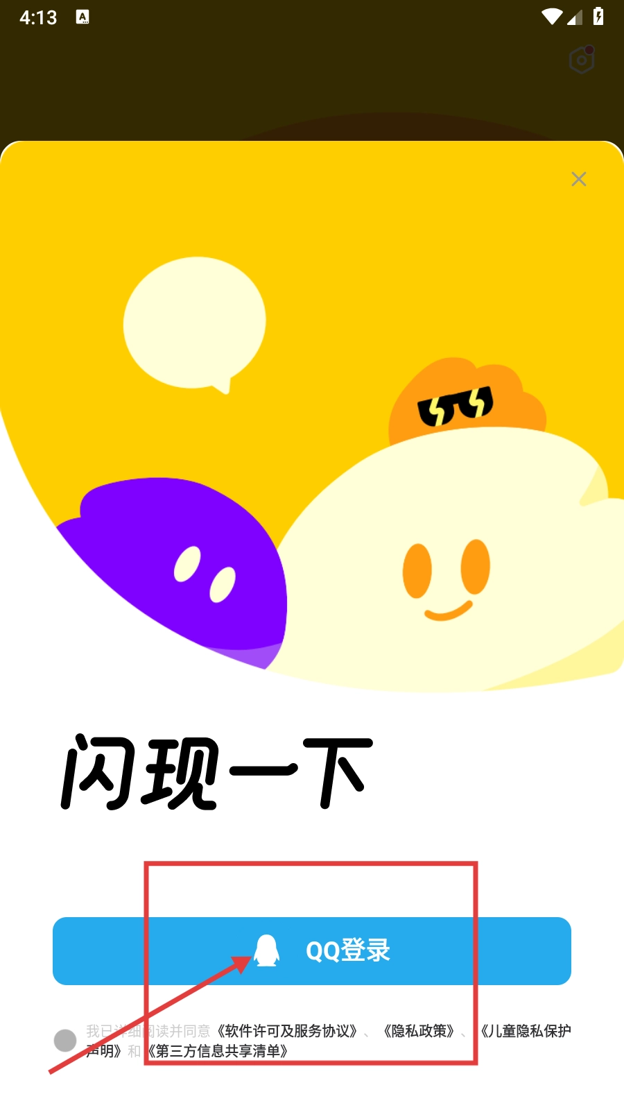 选择QQ登录的方式,在勾选同意相关协议之后,点击QQ登录按钮。
