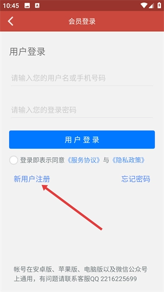 在会员登录页面,选择【新用户注册】选项,即可进入新会员注册页面。