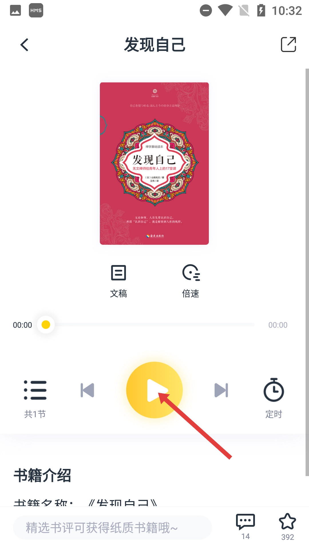 进入【发现自己】书籍页面后,点击播放按钮就能开始收听。
