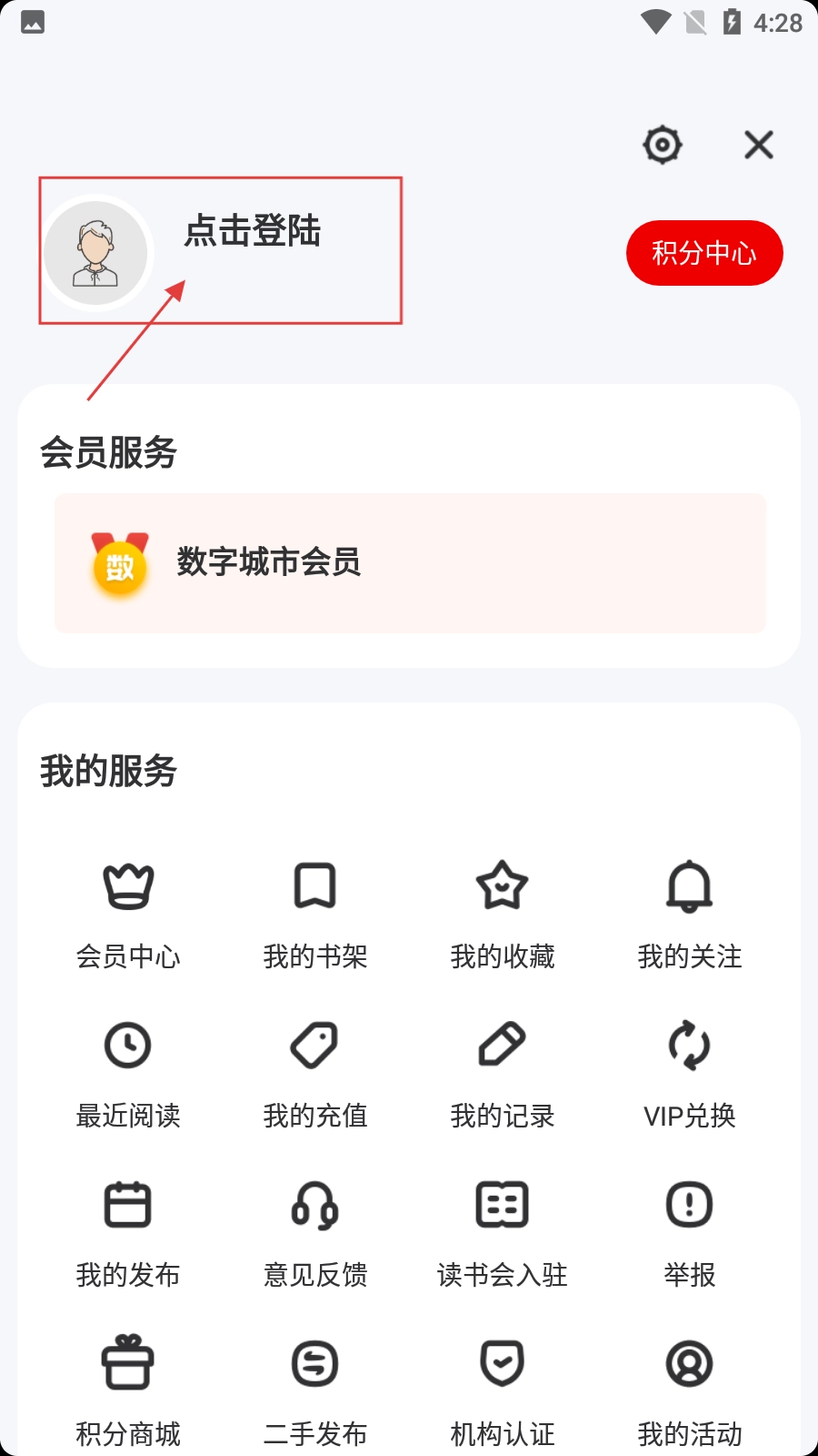 在数字武汉首页,点击右上角的个人中心图标,即可进入个人中心页面。