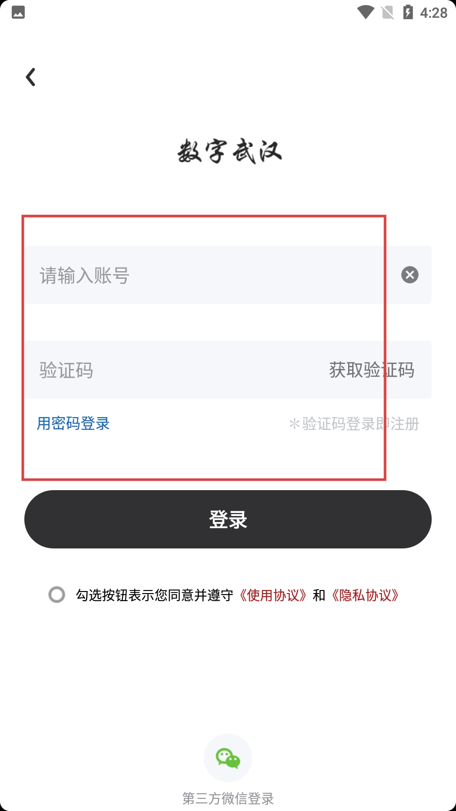 在登录界面,你可以选择账号密码登录方式,输入对应的账号与密码后点击【登录】按钮即可;此外,还能选择【用验证码登录】的方式。