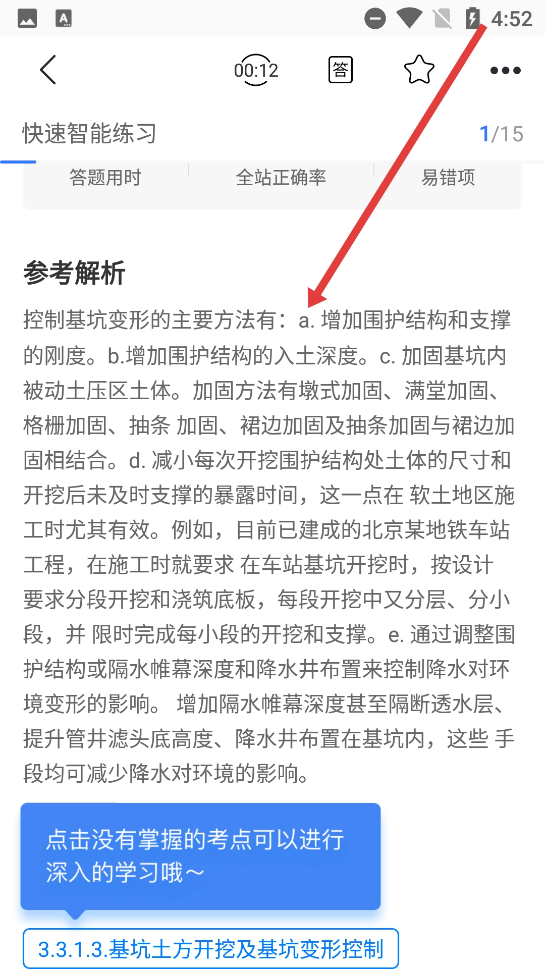 在解析页面,你能详细了解控制基坑变形的主要方法等考点内容,还可以点击相关考点进行更深入的学习。