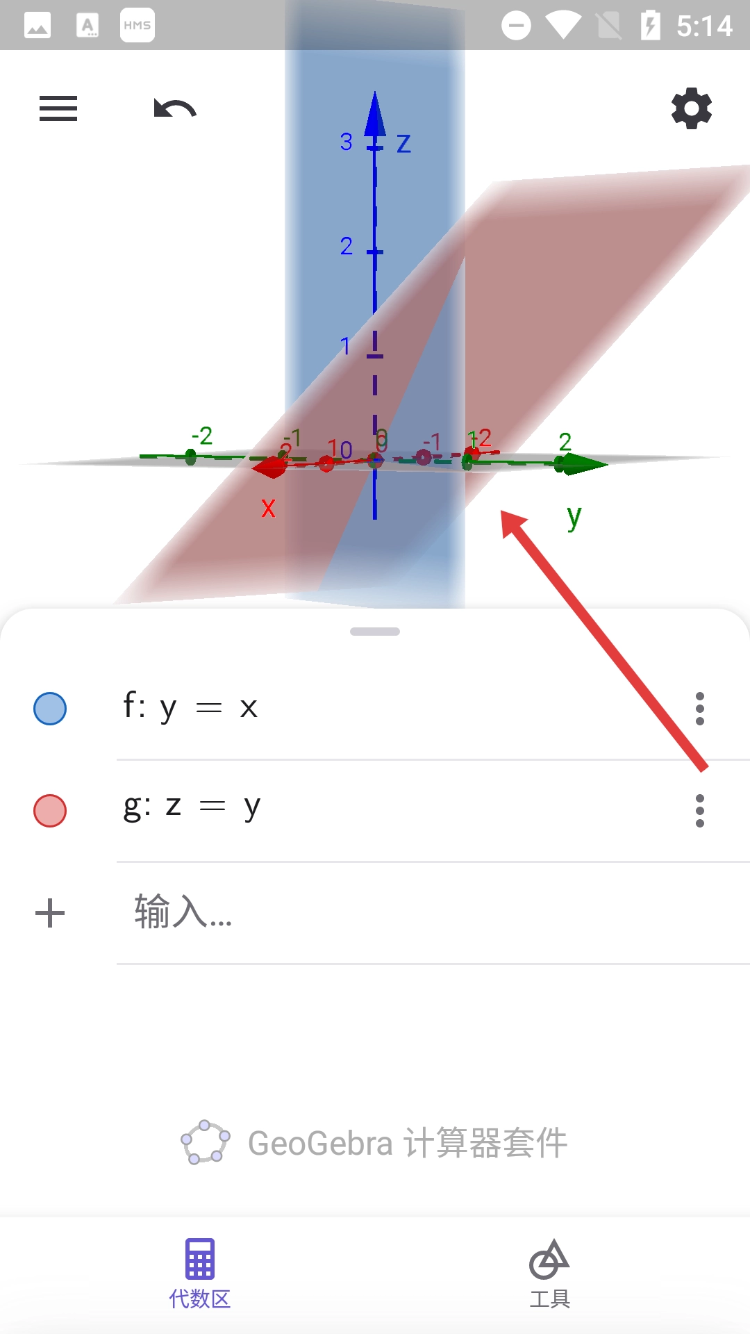 在输入框中输入函数表达式,例如【y=x+3】,系统就能在3D坐标系里生成与之对应的图形。