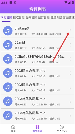 在音频列表页面,点击音频文件右侧的三点图标,就能展开操作菜单。
