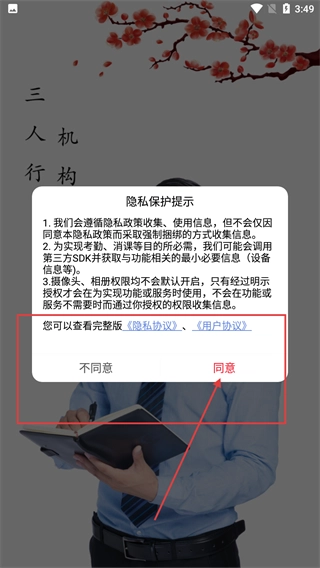 进入软件后,会弹出【隐私保护提示】框,点击【同意】按钮,即可继续使用软件服务。