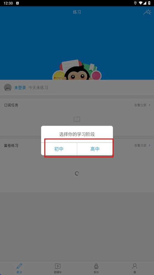 进入后选择学习阶段,如【高中-学习阶段选项】。