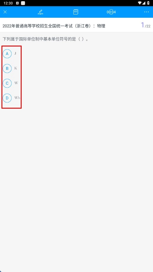 进入试卷答题界面后,就能开展题目解答工作,像这类物理题目,大家可以依据所学知识来挑选对应的答案。