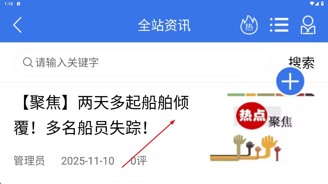 在全站资讯页面,点击【聚焦船舶倾覆新闻条目】,查看详情内容。