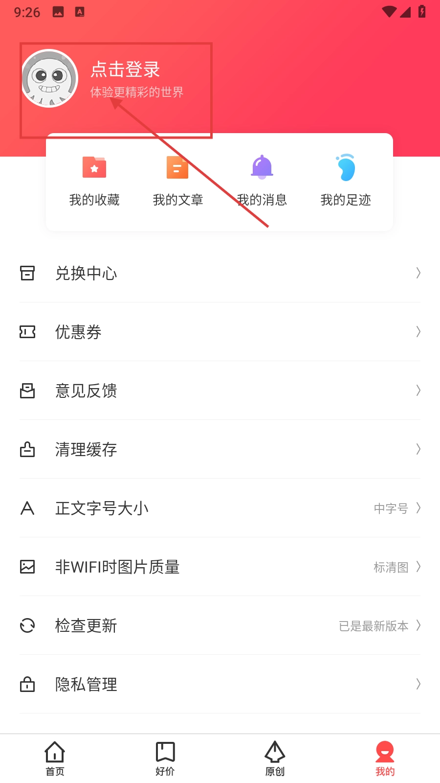 打开软件后进入【我的】页面,找到并点击【点击登录-体验更精彩的世界】这个区域,就能进入登录界面了。
