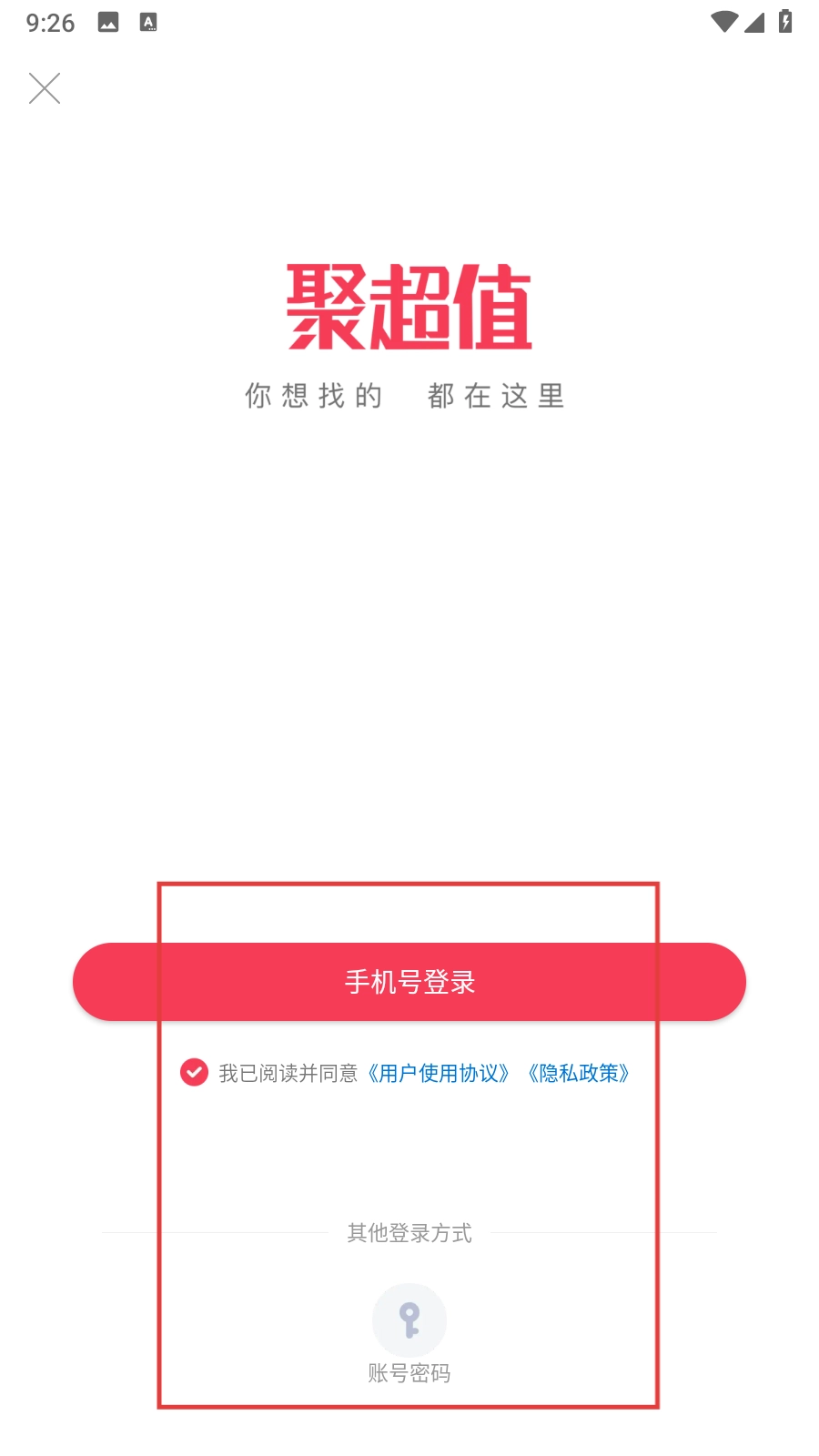 在登录界面,你可以选择【手机号登录】或者【账号密码】的方式,勾选同意相关协议后就能进行登录操作。
